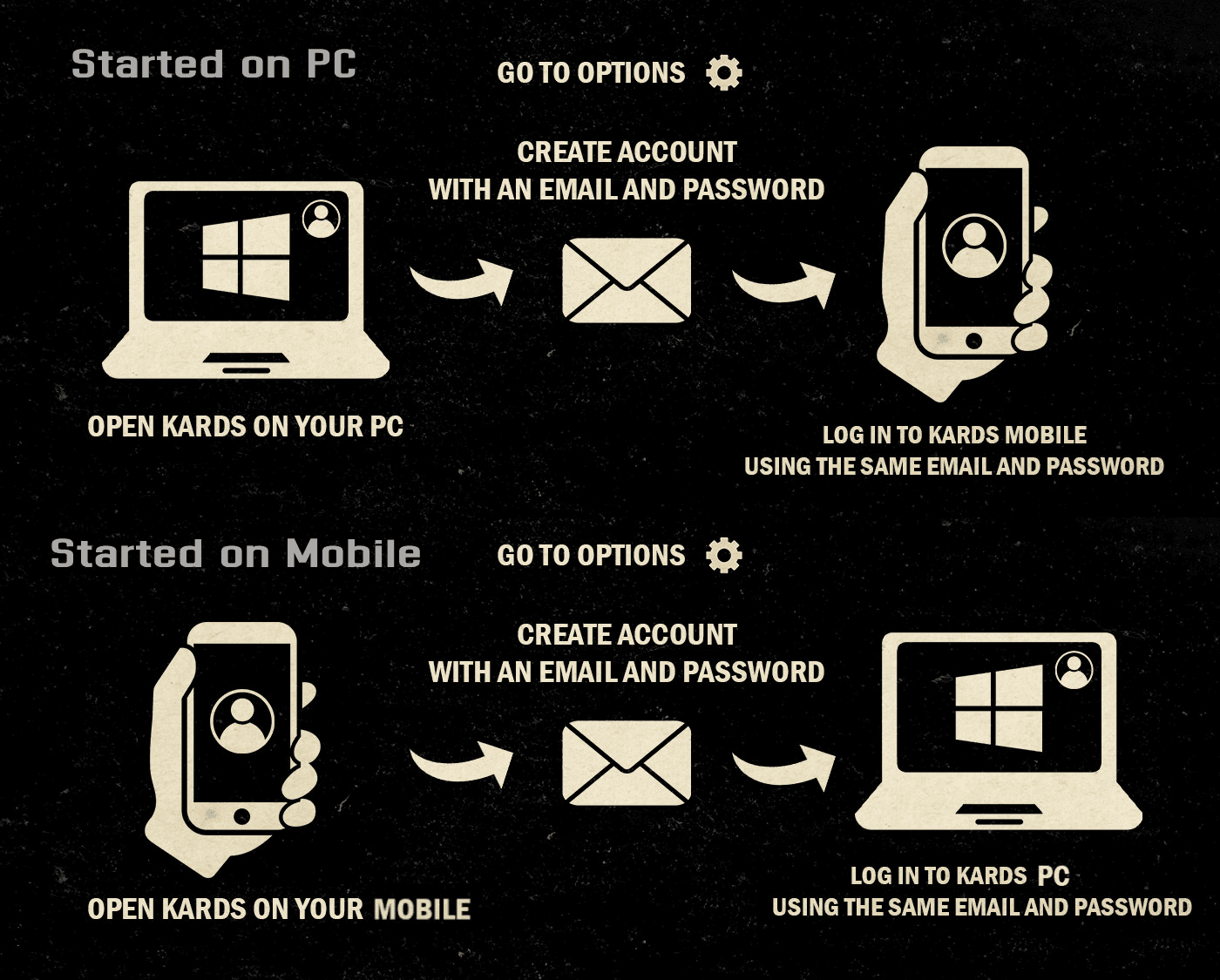 This guide will walk you through the step-by-step process of creating a KARDS Account and linking your account between platforms (PC and mobile).