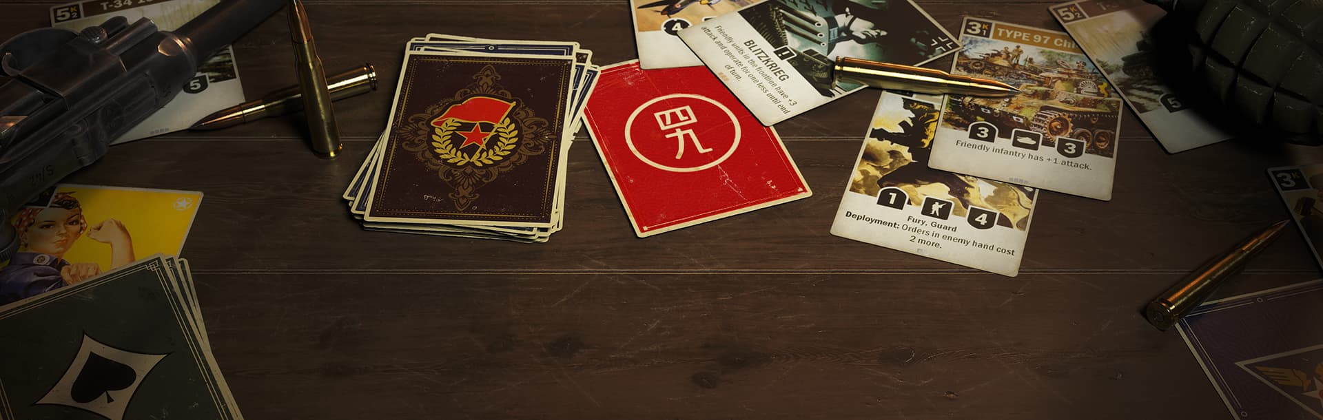 For example, the Soviet starter deck revolves around flooding the battlefield with cheap infantry which you then buff (improve their stats) with orders and synergies until you overwhelm the enemy. This deck archetype is often called “Tokens”.