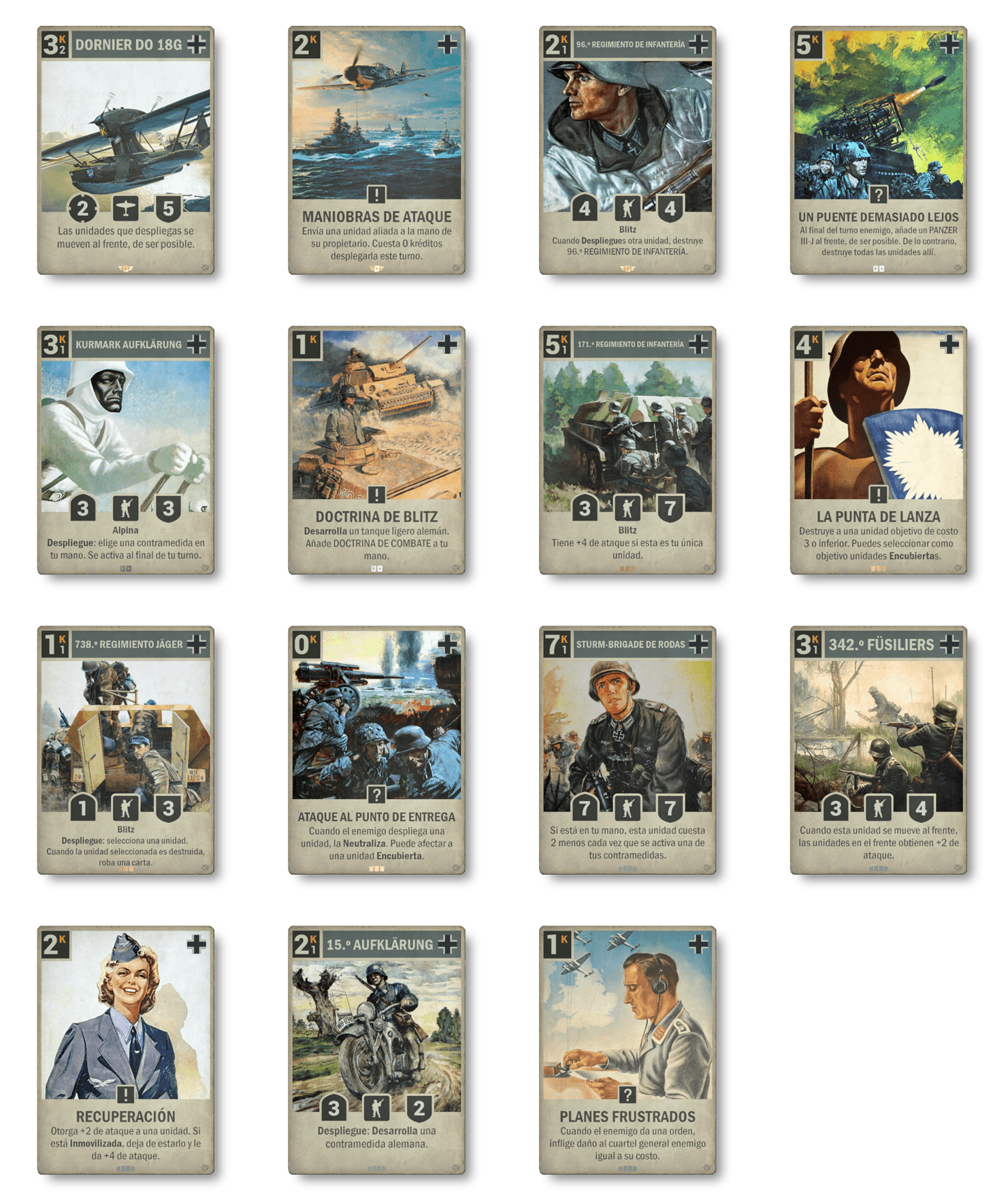 En Operaciones Encubiertas, Alemania recibe un sólido apoyo para sus contramedidas. Vemos varias cartas nuevas que apoyan esta temática, y proporcionan nuevas e interesantes formas de abordar la partida. Además, y en consonancia con el desarrollo histórico de la Segunda Guerra Mundial, vemos apoyo para el despliegue rápido en el frente. Completamos las temáticas alemanas de este verano con un poco de apoyo anti-encubierta y otras mejoras.