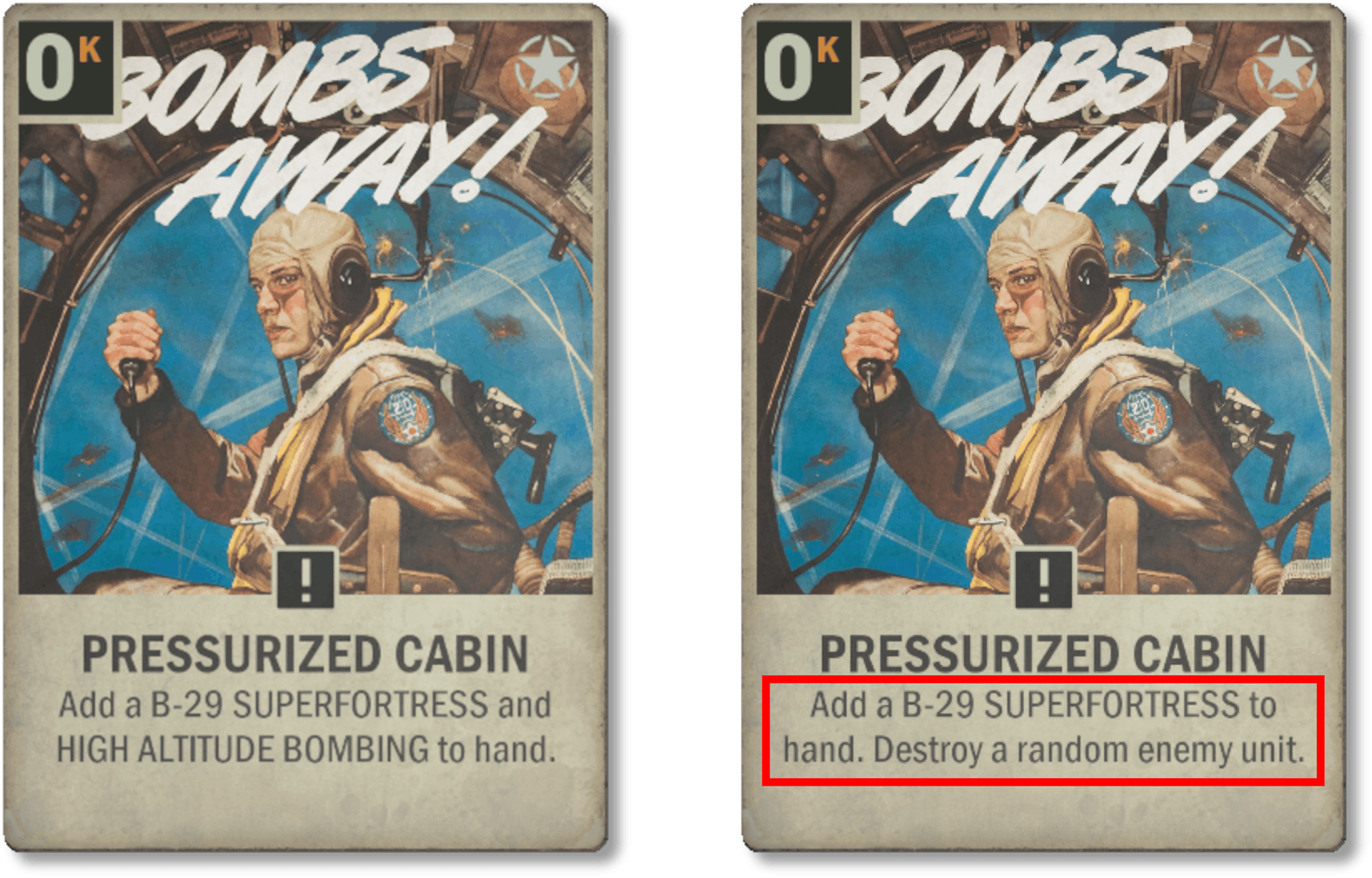 Nouveau : Ajoute un B-29 SUPERFORTRESS à votre main. Détruit une unité ennemie au hasard.