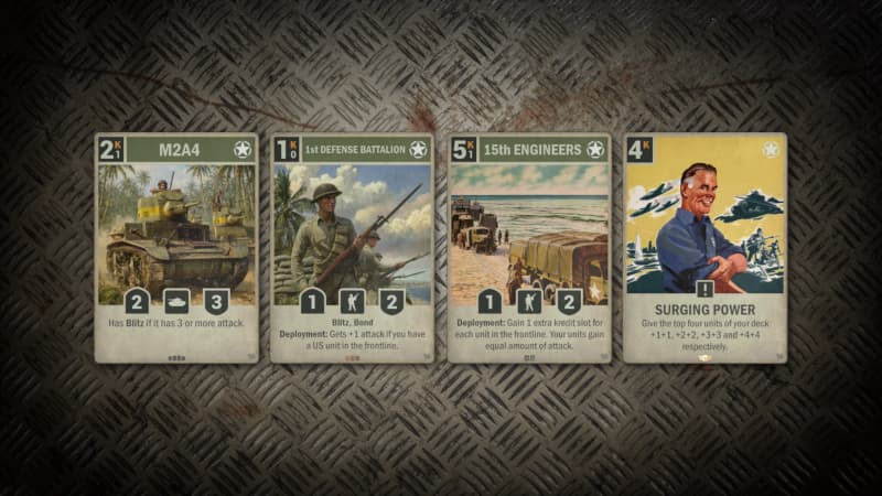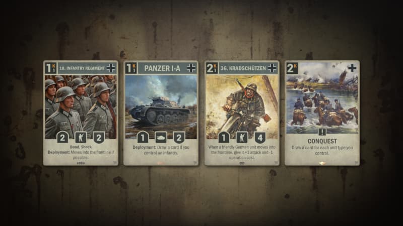 Un coup de pouce pour la doctrine des forces combinées : il pioche une carte si vous contrôlez une unité d'infanterie, vous encourageant à associer blindés et fantassins sur le champ de bataille