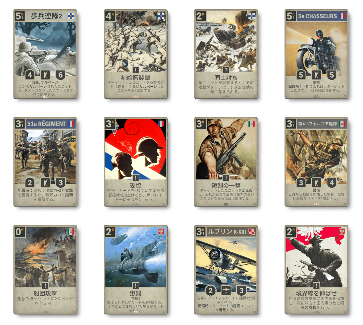 この機能により、戦闘中により正確なアクションとより明確なイベントの説明が可能になります。 一部のカードにはユニットサブタイプがあります。たとえば、すべてのスピットファイア戦闘機は「戦闘機」タイプに属し、新しいサブタイプ「スピットファイア」を搭載しています。これは特定の他のカード( 再装備 など)で参照できます。