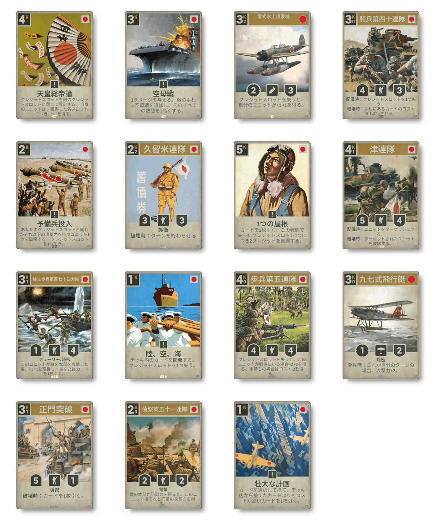 日本は隠密作戦で戦略兵器を大幅に強化した。 いくつかの新しいカードは、犠牲によって勝利を収めることを期待して、他の戦線でブーストを得るためにクレジットスロットをその贄とすることを中心に展開されています。 これは、第二次世界大戦中の日本の主要な戦略と完全に一致しています。 さらに、このリリースではいくつかのスリリングな秘密カードが入手できます。