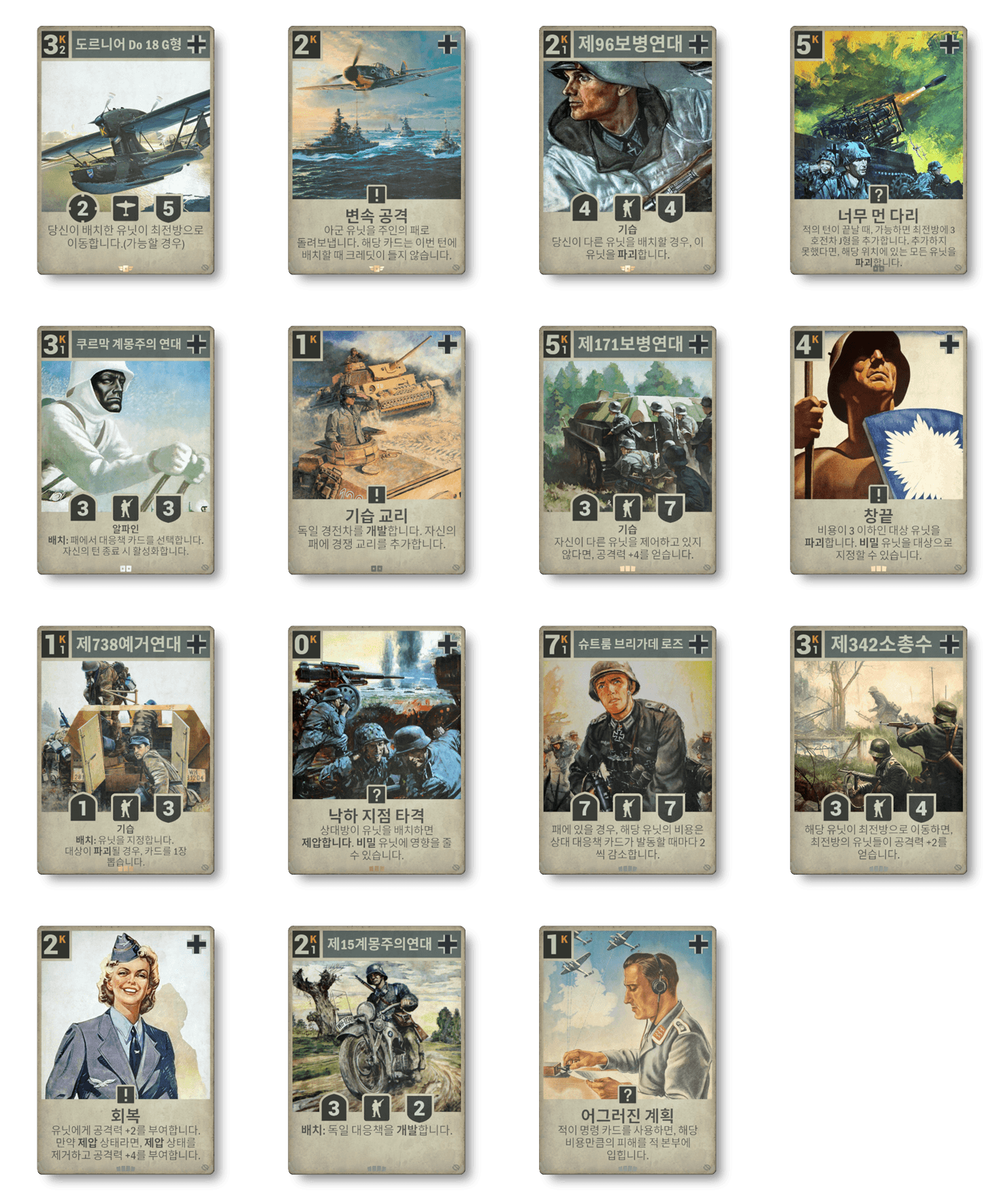 신규 코만도 유닛과 반복 행동(2회)을 활ㅇㅛㅇ하는 카드를 포함하며 더욱 넓어진 제공 능력과 제2차세계대전 당시의 어두운 전술을 활용할 수 있습니다.
