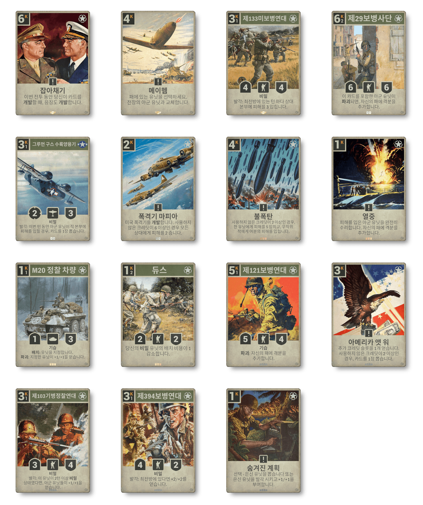다섯 개의 주 국가는 각각 신규 카드 15장을 통해 병력이 강화되었으며, 네 개의 보조 국가는 각 3장이 추가되며 역사상 제2차세계대전에서의 역할에 부합하는 균형 잡힌 강화를 보장합니다.