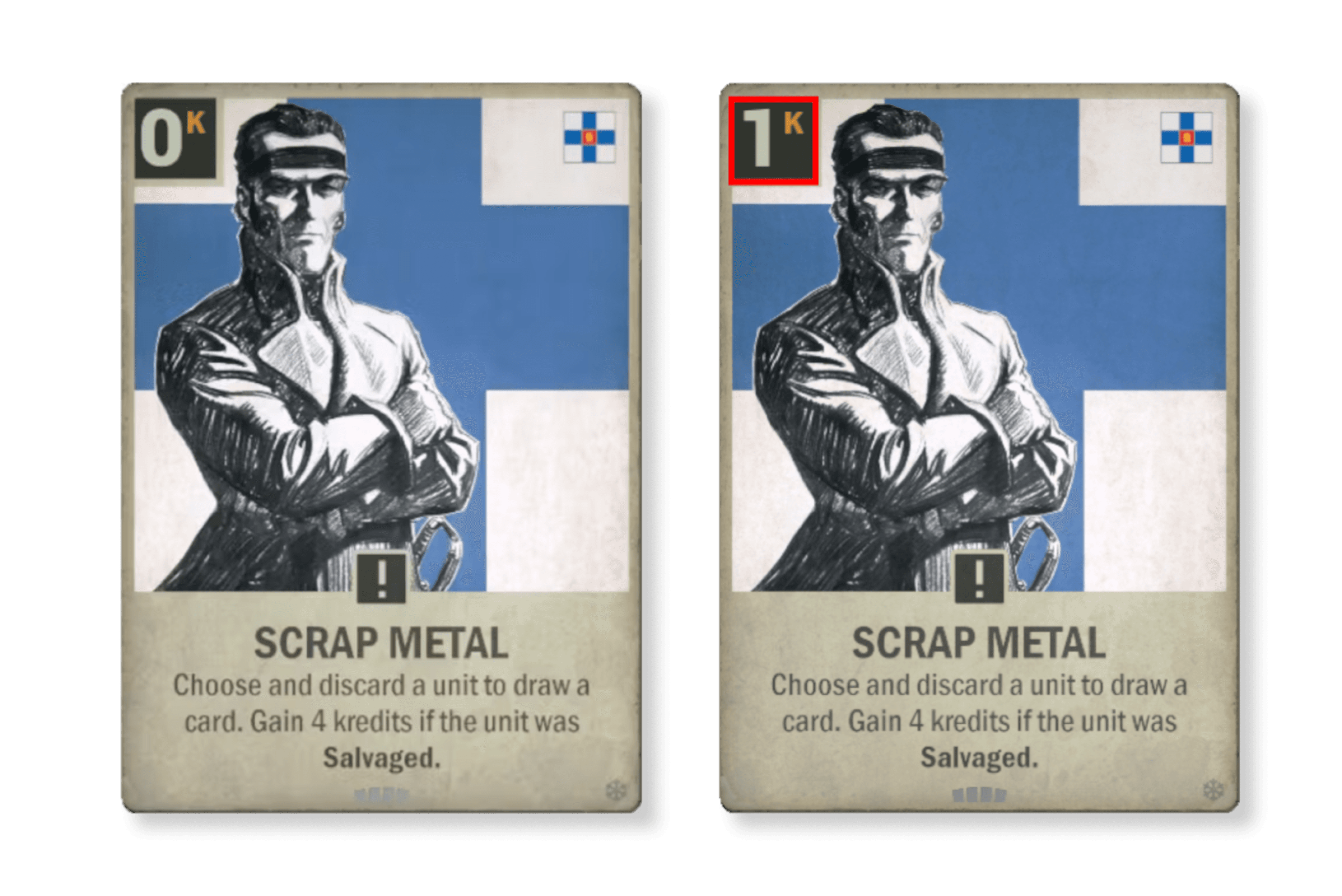 이 카드는 미운 오리 새끼 혹은 낙동강 오리알 같은 카드였습니다. 새로운 버전은 동일한 기획 의도 내에서 작동하지만, 아래 두 가지를 포함한 다른 일본 카드와 함께 훨씬 더 강력한 시너지 효과를 낼 수 있습니다. 액면가 그대로 보게 되면 유닛 하나를 파괴하기 위해 2장의 카드를 사용해야 하지만, 소모되는 3 크레딧보다 훨씬 더 많은 비용의 적 유닛을 파괴하는 등 해당 콤보를 적절히 사용함으로써 승기를 잡는 다양한 방법이 있습니다.