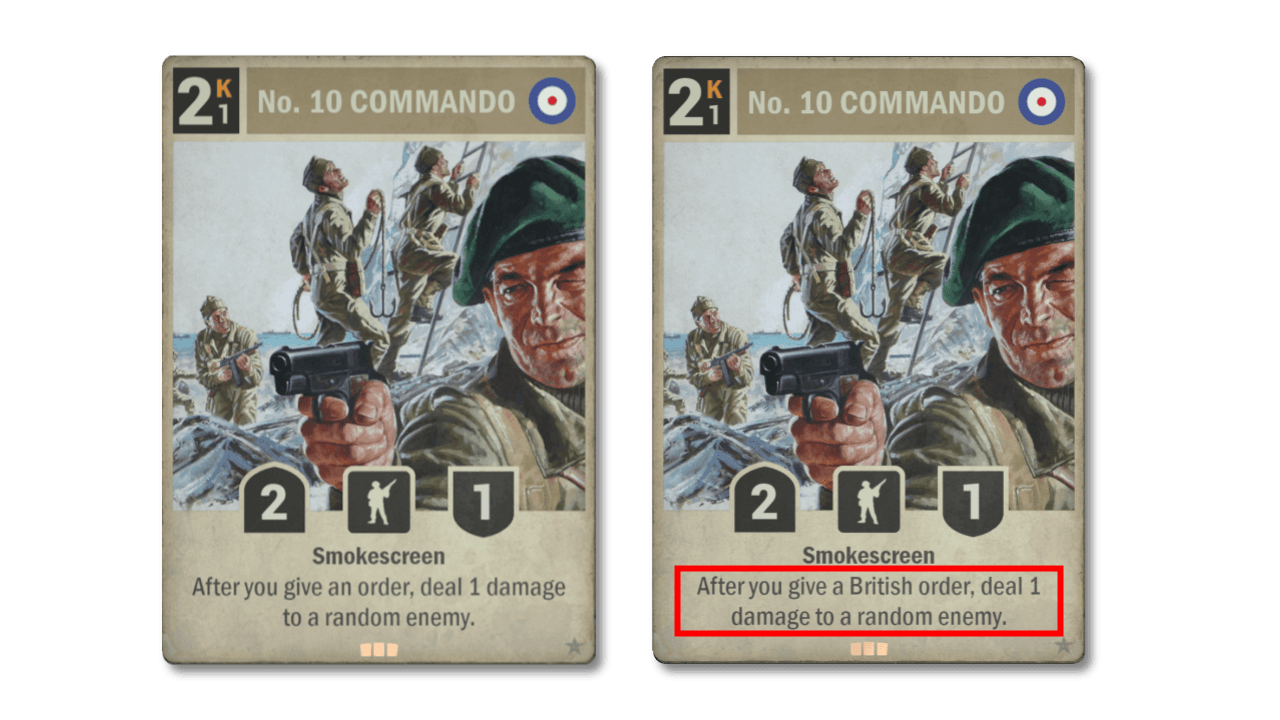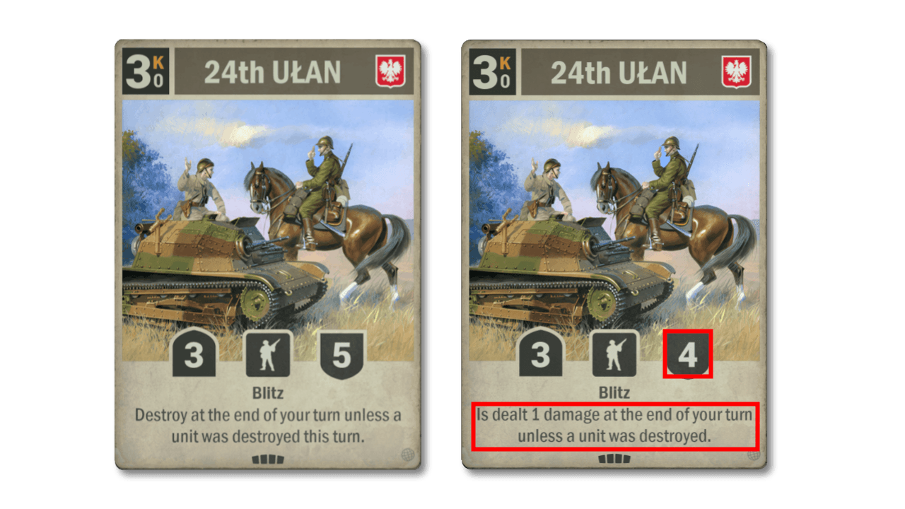 Alongside the bug fixes below, we’d like to highlight an important update to cards with the wording “the first time” (e.g. 7TP, B-26 GROUPE BRETAGNE). These abilities now only trigger the very first time their condition is met - regardless of whether the card is already in play.