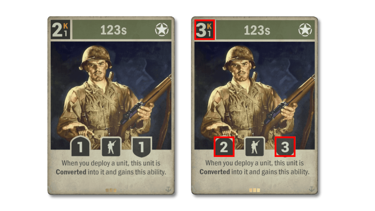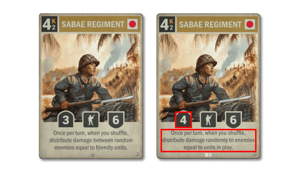 If a Ki-45 DRAGON SLAYER was already deployed and turned into a Veteran unit on your board, if the SURVEIL order was played and created a second Ki-45 DRAGON SLAYER unit by converting a different unit in hand, that second Ki-45 DRAGON SLAYER also became Veteran when deployed. Fixed.