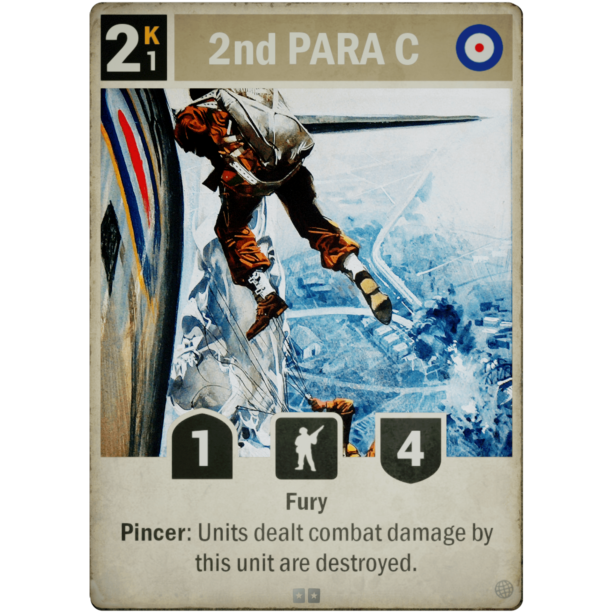 The 2nd Parachute C was a company sized unit of the 2nd Battalion, the Parachute Regiment (2 PARA) of the British Army, but would later become part of the Army Air Corps. The battalion was formed in 1941 and early 1942 it participated in its first mission which was Operation Biting, a raid on a German radar installation in Bruneval, France. After its first mission the C Company of the battalion took the nickname “C (Bruneval) Company” in honor of the operation. The battalion became part of the 1st Parachute Brigade of the 1st Airborne Division and participated in British airborne operations in North Africa, Sicily and Italy, and lastly and most famously in the Battle of Arnhem during Operation Market Garden in September 1944.