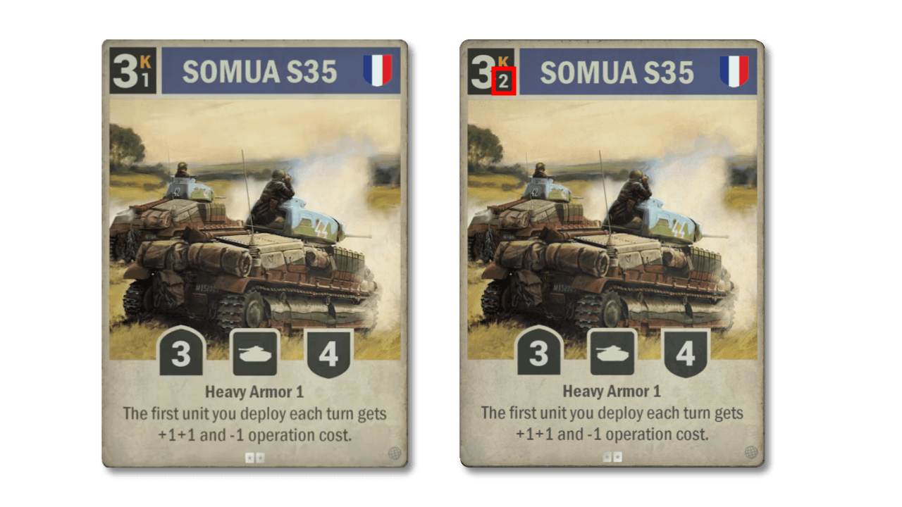 Somua S35 has become a lynchpin in several strong aggro decks, alongside its partner in crime 13e Dragons. Its power stems from its strong ability coupled with a very solid body for its cost. So of course we are changing the operation cost. Makes perfect sense, right? Well, we do want Somua to continue to be a strong card and retain the attributes that make it attractive. But it is slightly overtuned, so the operation cost is the best one to adjust to keep the card strong, but rein it in slightly.