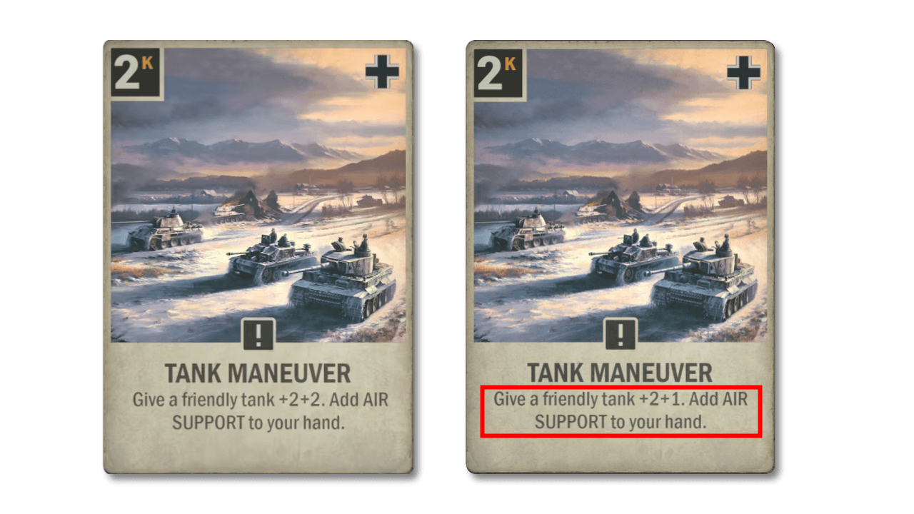 New: Give a friendly tank +2+1. Add AIR SUPPORT to your hand.