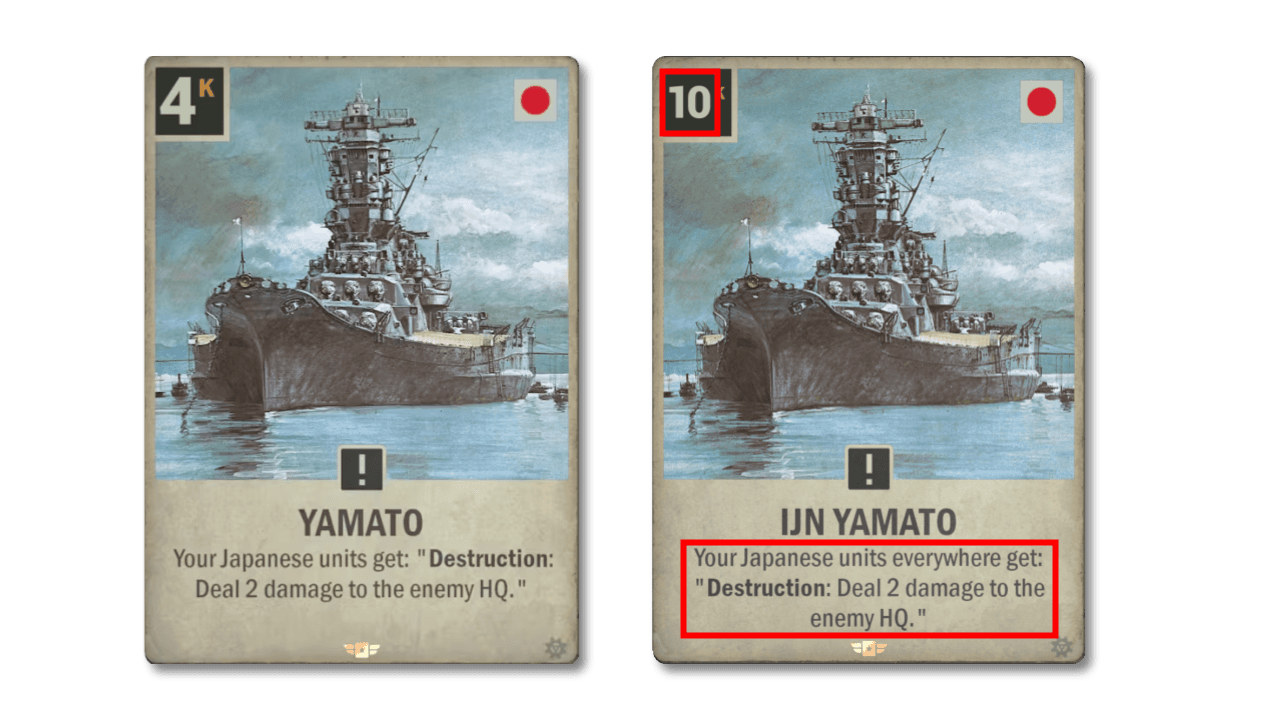 New: 10k, Your Japanese units everywhere get: “Destruction: Deal 2 damage to the enemy HQ.”