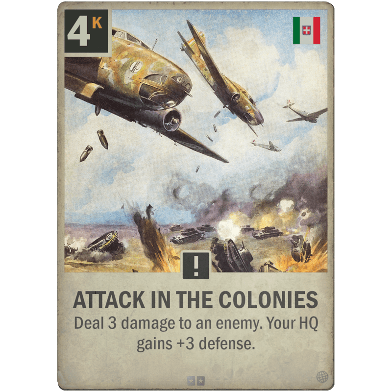 Global Conflict focuses on the wars in the colonies in SouthEast Asia and has Japan and Great Britain as main antagonists; it also brings some support to the colonial powers France and Italy.
