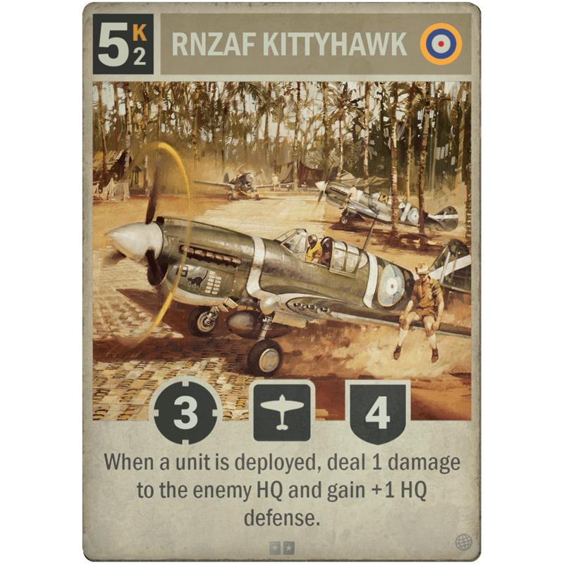 We also honor New Zealand's contributions alongside Great Britain during WW2. As one of the new special cards, we see the RNZAF variant of the legendary Kittyhawk arriving.