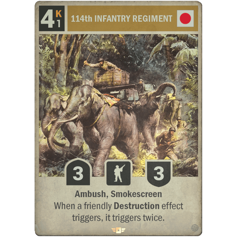 As the new Elite card of this update, the Japanese 114th Infantry Regiment is truly a force to be reckoned with. Already, its Ambush and Smokescreen effect turns it into a formidable opponent on the battlefield, but then it comes with an additional effect!