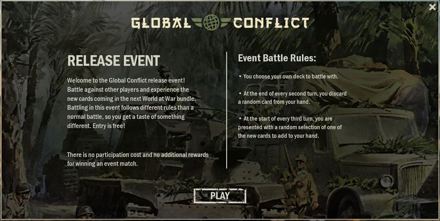 In this event, you can enjoy all the new "Global Conflict" cards for free - even if you don't have them in your collection. A set of special rules spices up this event.