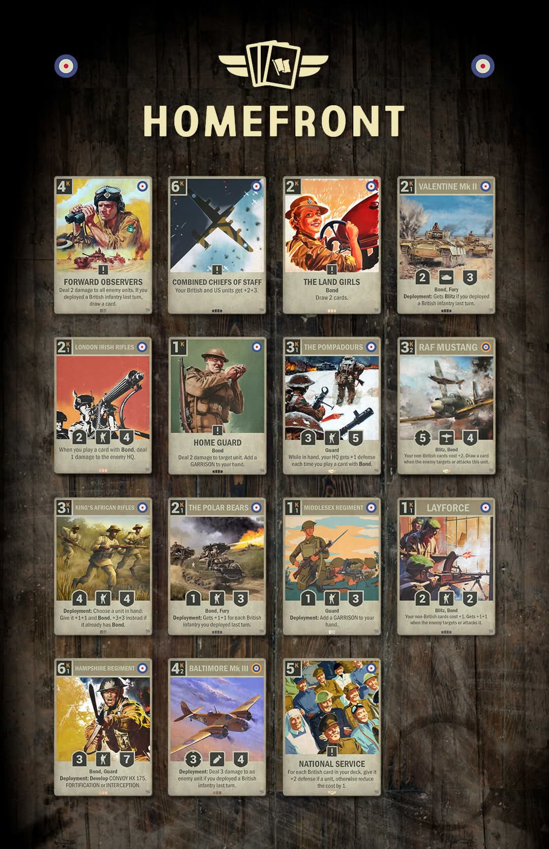 From steadfast infantry like THE POMPADOURS to furious armor like VALENTINE Mk II, Bond decks thrive through unity and crumble through disarray.