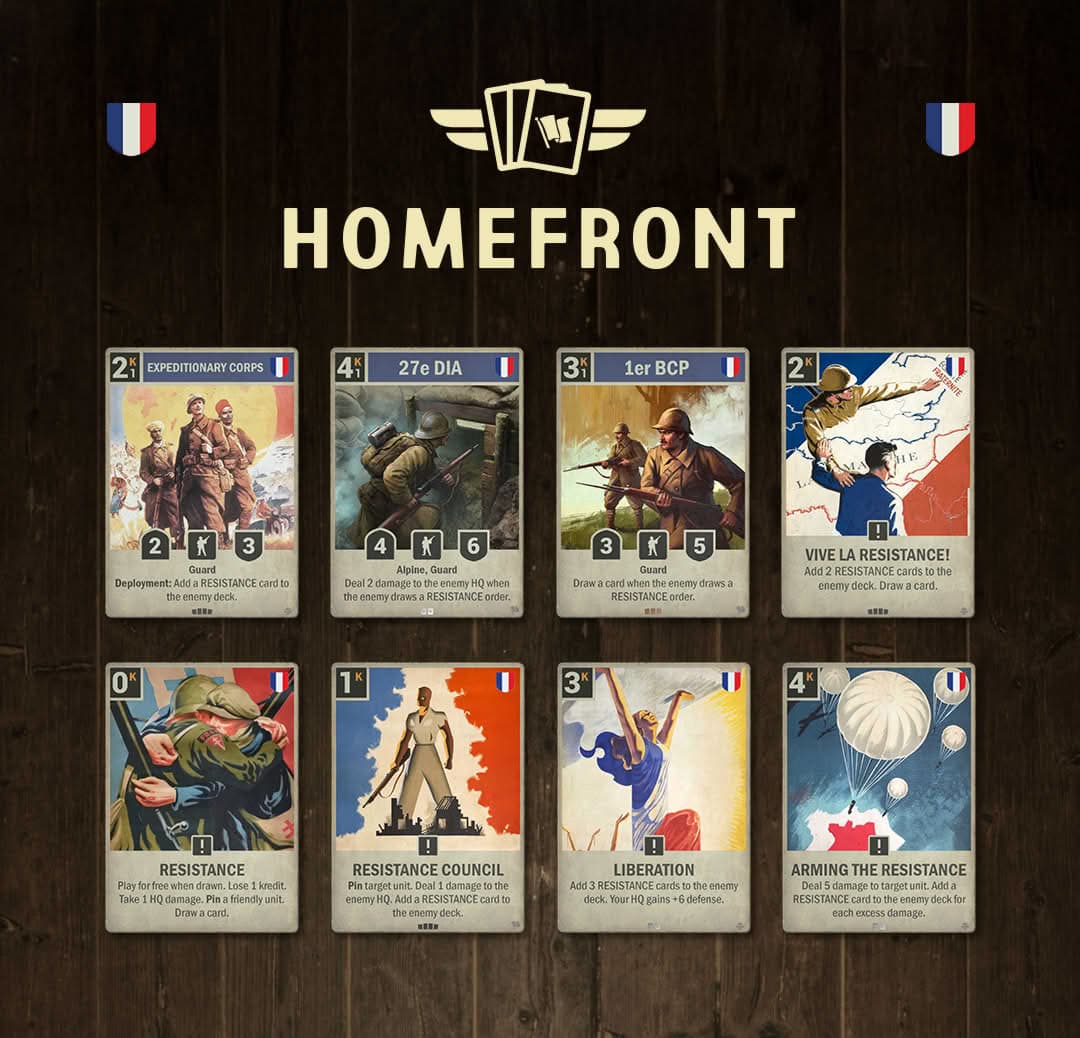 Though France receives only three new Homefront cards, it also stands alone with a complete redesign of the iconic Resistance mechanic - a transformation so dramatic it earns its own spotlight.