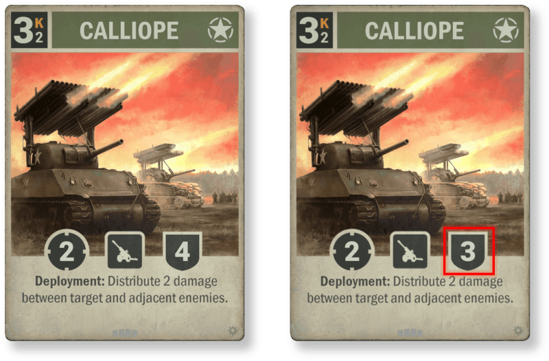 The long distance member of the Sherman family, Calliope came out all tubes blazing with Blood & Iron. With a solid ability and body, it has been rocking it up in many different decks, a good indicator of a strong and versatile unit. But the fireworks are a bit too much, so we are making it slightly easier to deal with.