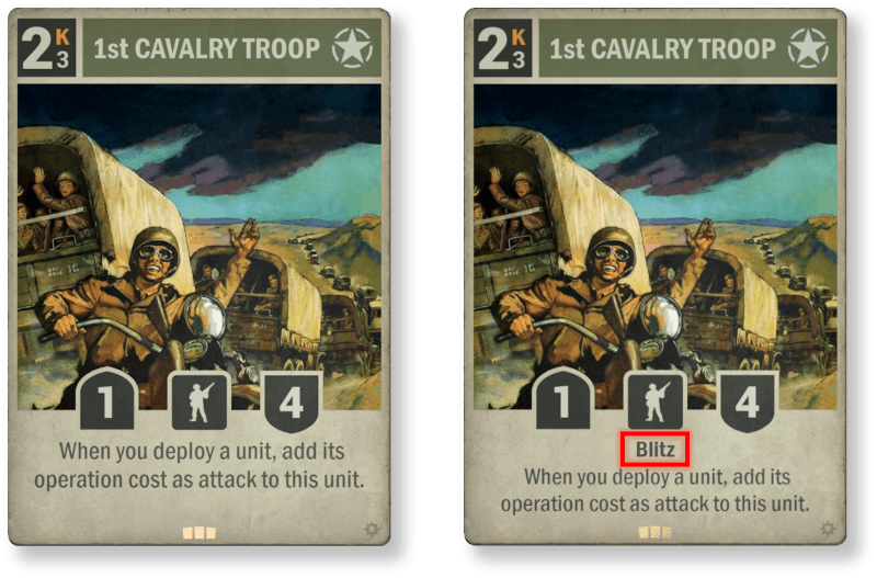 The Throp deck is an interesting deck that plays out differently than most others. We hoped the additions to the deck in Blood & Iron would propel the deck into the limelight, but so far it has not really materialized. The 1st Cavalry Troop was always intended to be a strong inclusion to the deck, so to emphasize that even further we are throwing them the Blitz Bone.