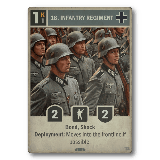 Effect: Deployment: Draw a card if you control an infantry.