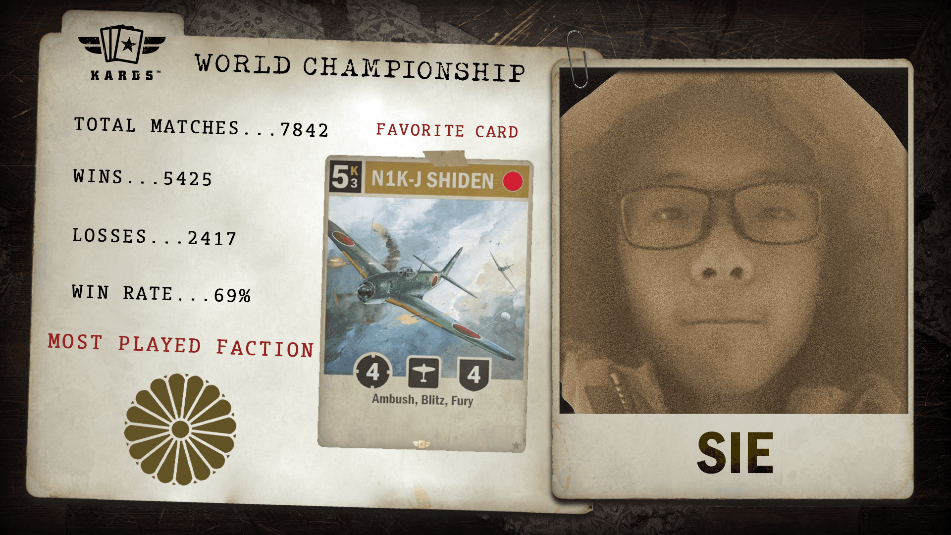Joining the KARDS battlefield in early 2024, Sie_ quickly proved their strength with a 3rd place finish in the Naval Warfare Tournament. Boasting a 69.2% win rate, one of the highest in this year’s finals, Sie_ represents the new wave of Commanders making their mark in record time.
