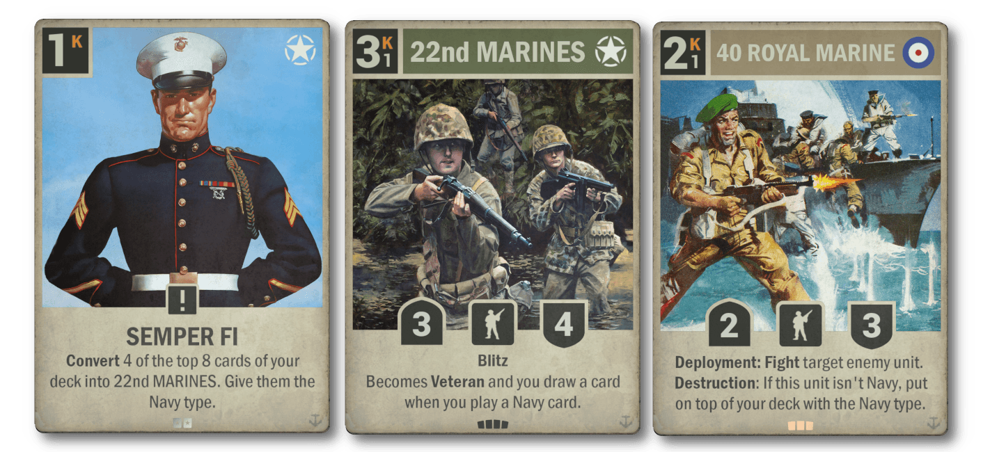 Naval Warfare in KARDS doesn't mean fielding fleets on the frontline. In keeping with the game’s grounded, land-based combat focus - and historical accuracy - the Navy continues to be represented through orders and countermeasures, not unit cards. After all, it would be difficult to reconcile a Tiger tank trading fire with the USS Missouri. (What stats would you even assign her?)