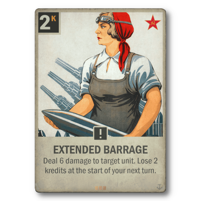 Ability: Deal 6 damage to target unit. Lose 2 kredits at the start of your next turn.