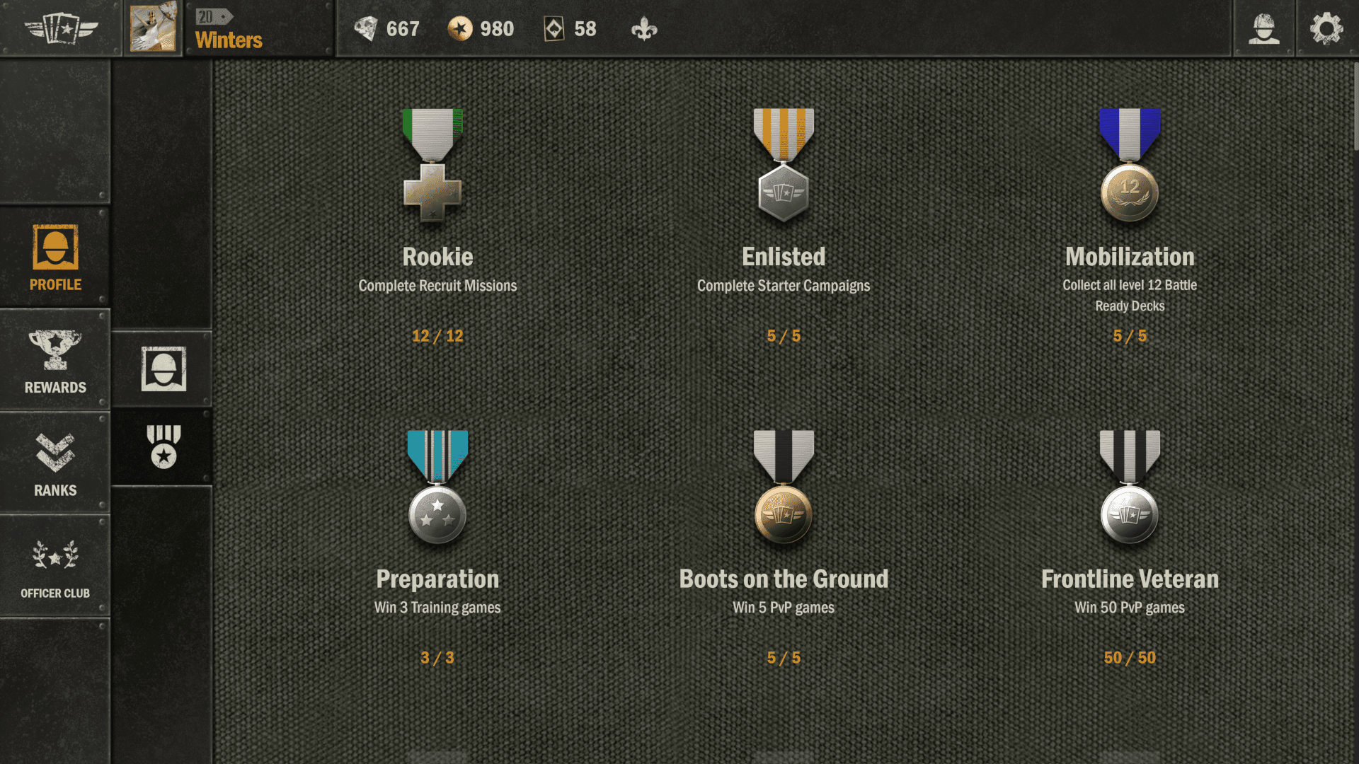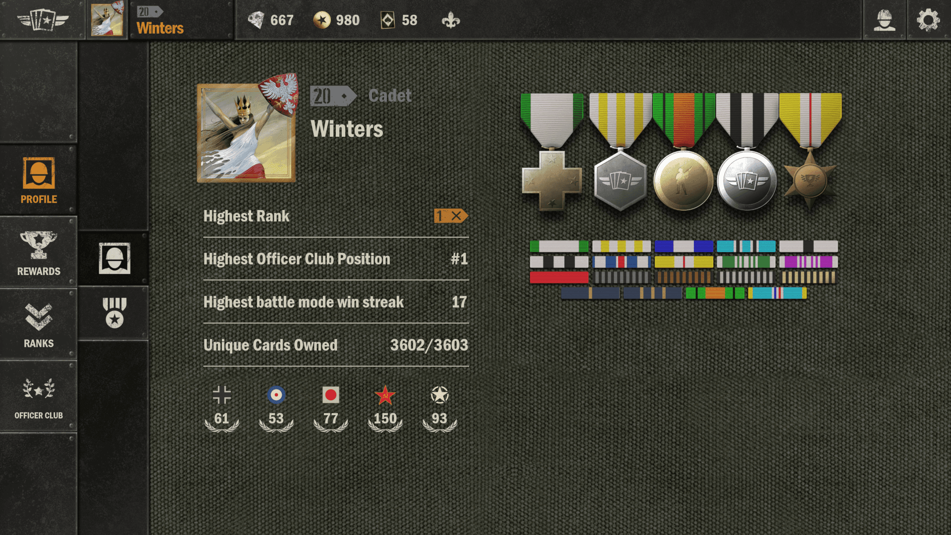 On the right side, you’ll see a display of your earned medals and ribbons. You can hover over each one for more info, and select up to five banners to be featured at the top of your profile - perfect for highlighting your proudest moments.