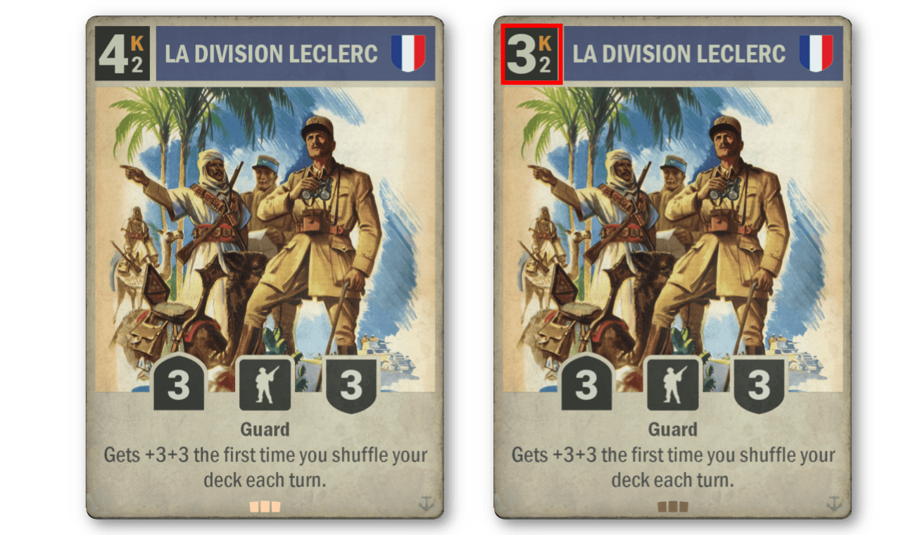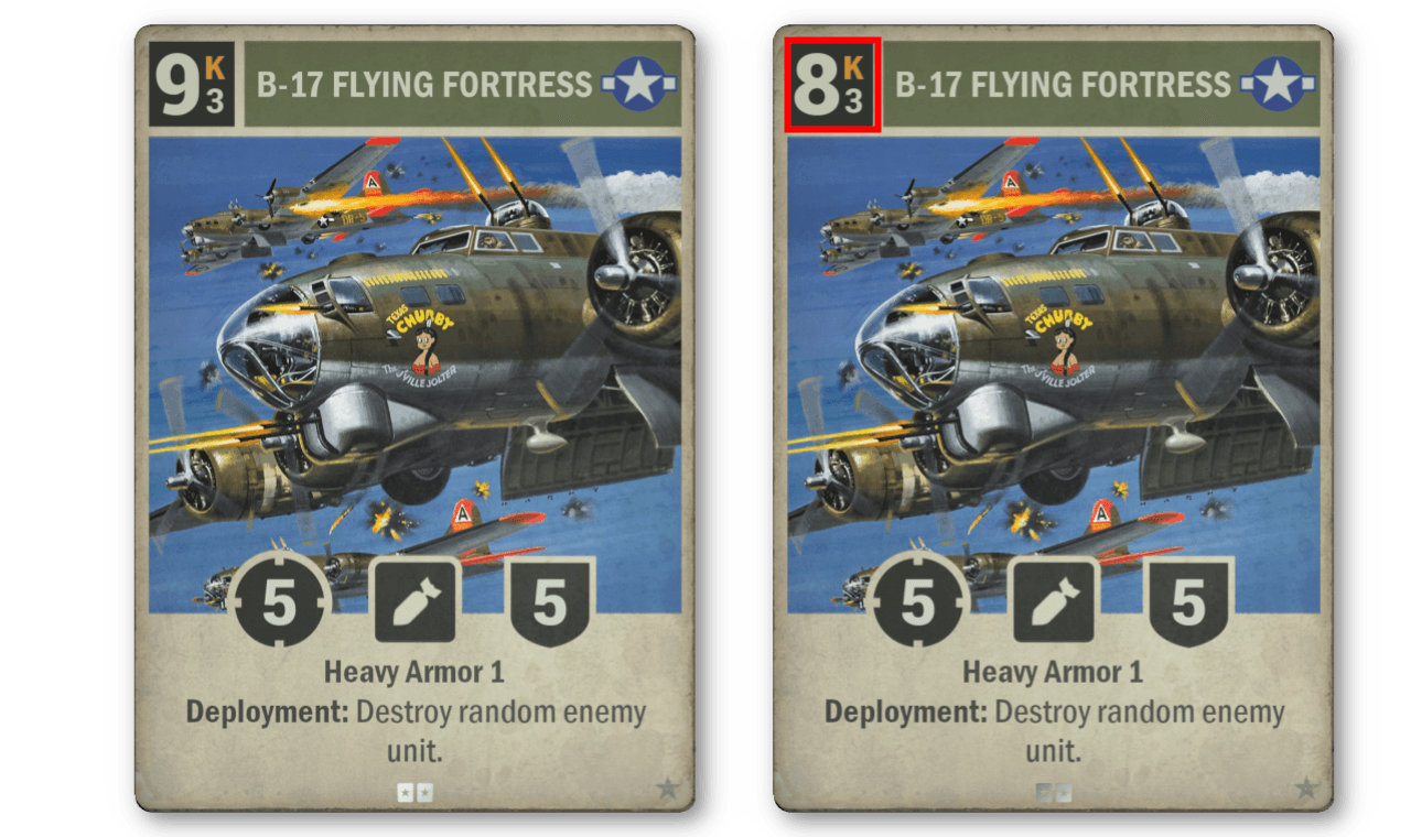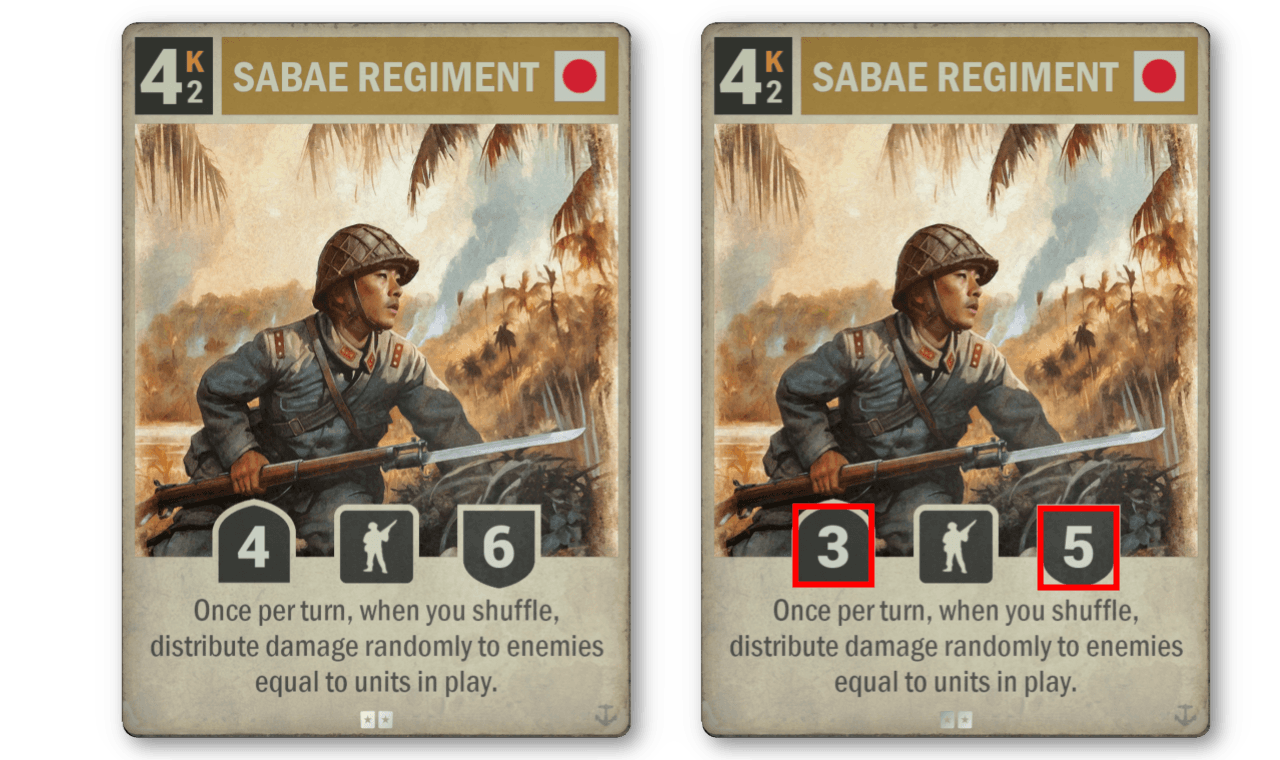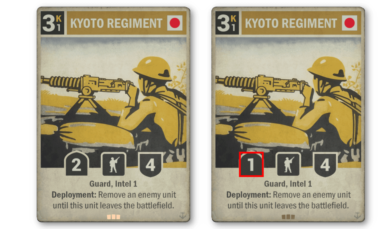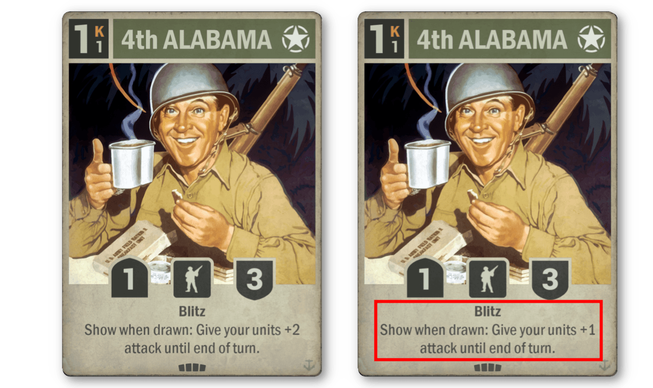 This improved timing means it can benefit from effects from cards such as the USS FITCH - letting your freshly promoted Marines receive the full +2+2 Navy bonus when played from hand into a FITCH turn. This is purely a functional/timing fix and does not change the unit's cost or stats, only when the Veteran trigger applies.