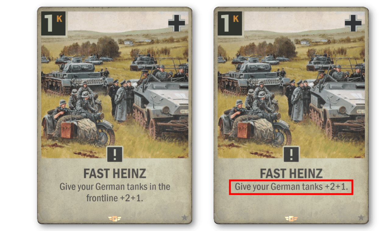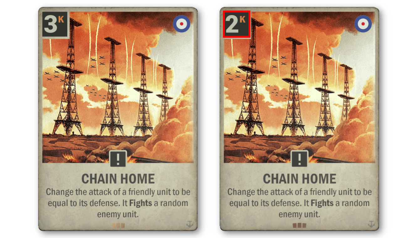 A “+ attack” buff (e.g. from 17th INFANTRY REGIMENT, RULE BRITANNIA, CLOSE AIR SUPPORT) played on TIGER MOTH did not show the correct attack value. Fixed.