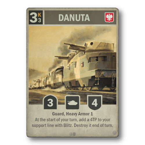 A Polish Tank of Special rarity that costs 3 kredits to deploy and 3 kredits to operate.