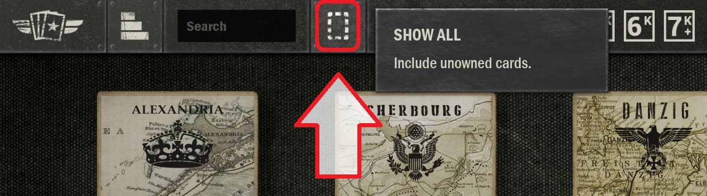 The elusive “Show All” button will show you all the cards, also those you do not own.