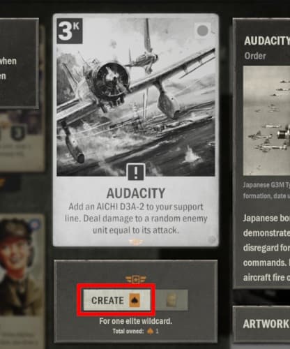 Once you’ve found the card you wish to create, right-click it to bring up further details about it. Click the “Create” button below the card to create one copy of the card with a wildcard of corresponding rarity. Your wildcard will be used to create your desired card, which you can now add to your decks at will.
