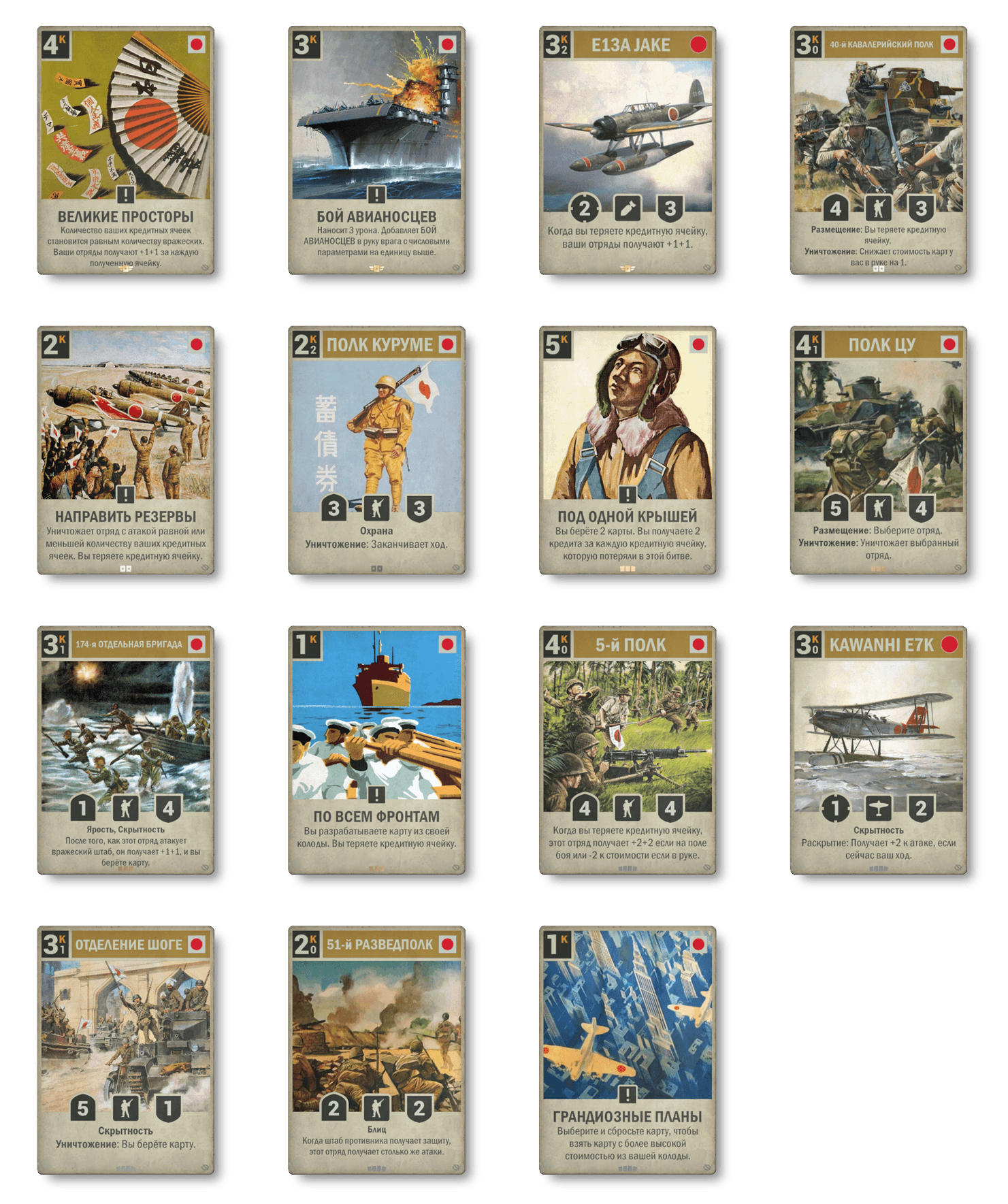 Тайные операции значительно расширяют стратегический арсенал Японии. Несколько новых карт вращаются вокруг жертвования кредитными ячейками ради краткосрочных преимуществ в надежде на достижение быстрой победы. Тема прекрасно согласуется с основными стратегиями Японии во время Второй мировой войны. Кроме того, в этом релизе она получает несколько захватывающих скрытых карт.