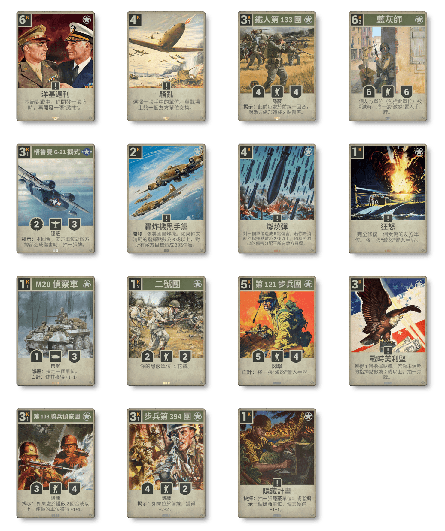 新增大量隱蔽卡牌,主攻隱蔽策略。“懲戒”主題還引入了 13 張強大的衍生卡牌,提升了美國的策略性與功能性。