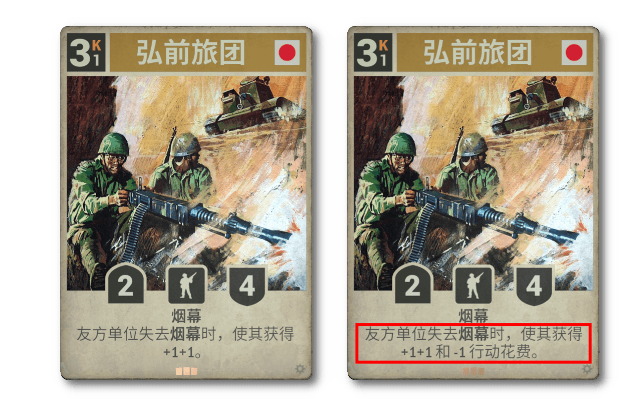回答上一條的問題 - 如果弘前一個還不夠,也許這項小小的補強能進行二次炒作。現在行動花費為 0,這輛豆戰車的威脅要比您喊出“沖,九二車,沖!”快三倍。