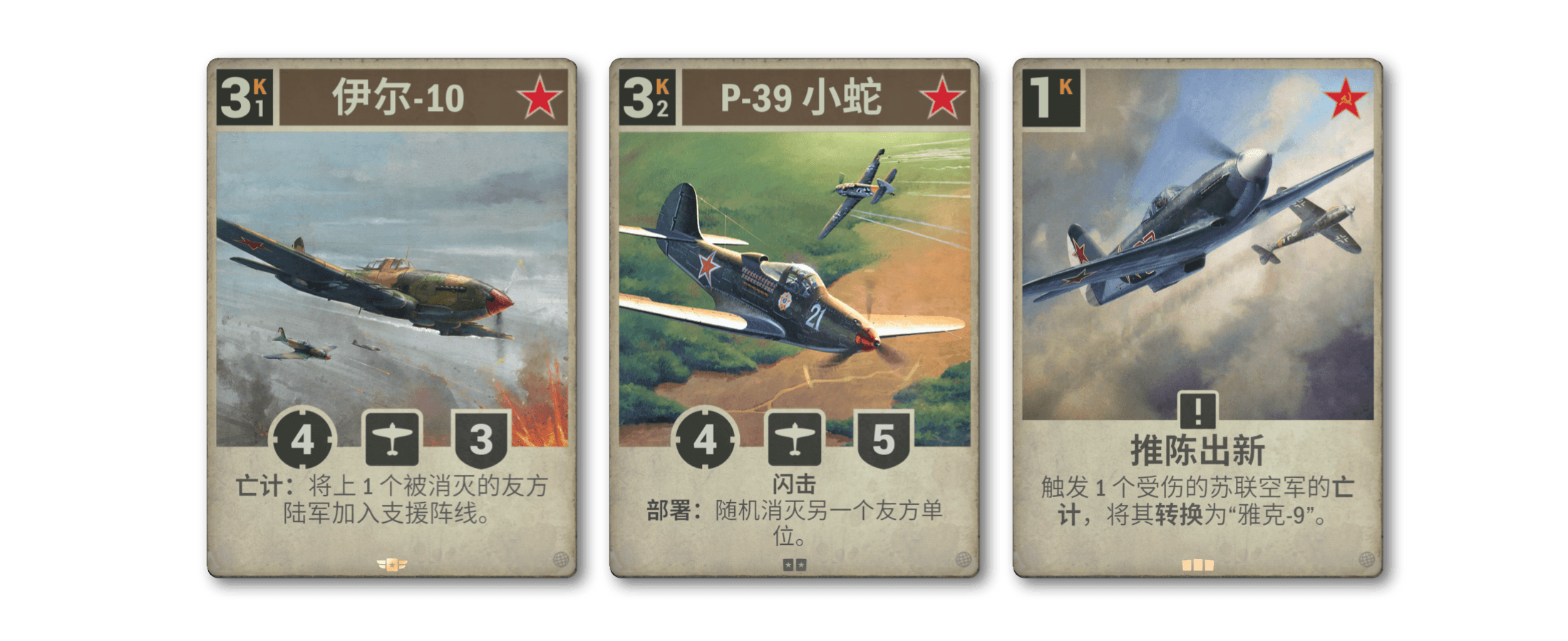 伊尔-10(精英)- 被消灭时,能将上 1 个被消灭的陆军单位带回支援阵线。
