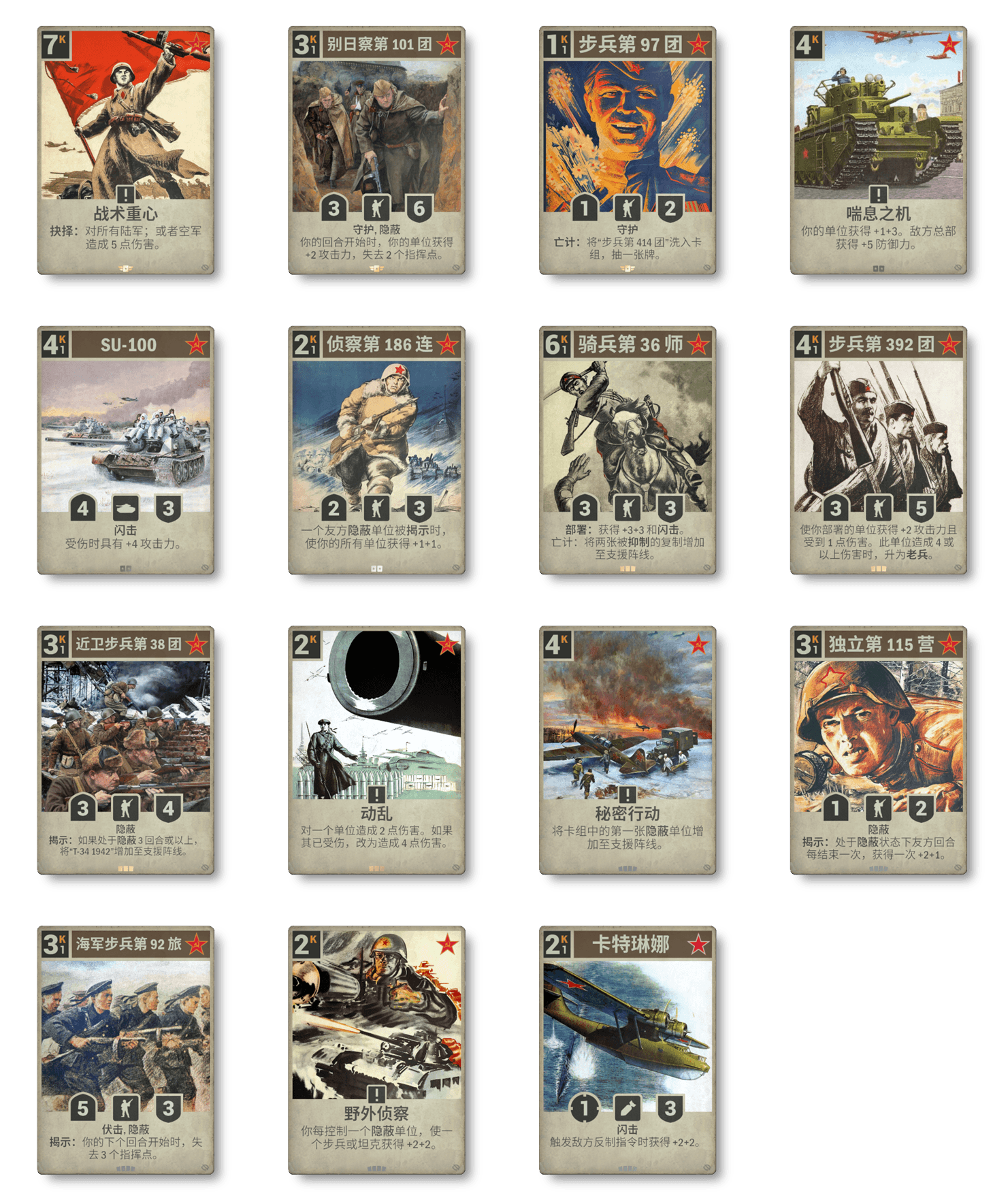 今年夏季苏联主题主要围绕隐蔽单位,并伴有多张配套辅助卡牌。因此,与新版本“秘密行动”名称相同的同名卡属于苏联。