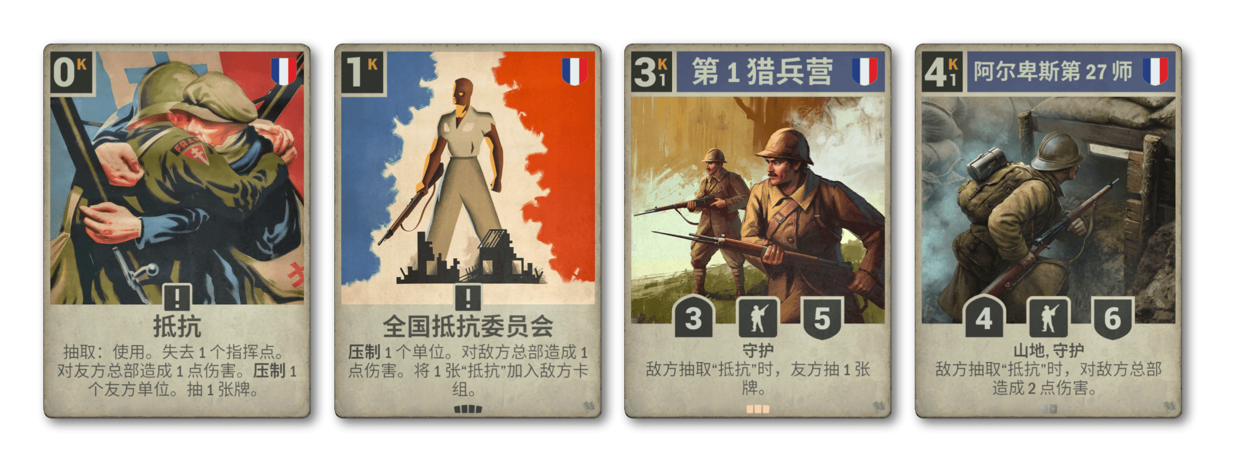 为支援这一变革,法国将在国土阵线迎来三张全新卡牌:全国抵抗委员会、第 1 猎兵营和阿尔卑斯第 27 师。