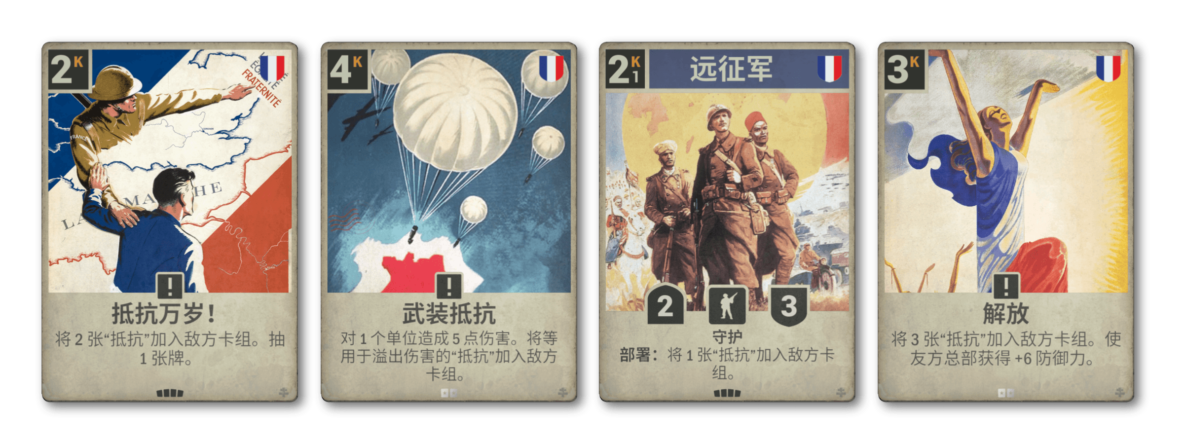 老牌抵抗组件也与时俱进:抵抗万岁!、武装抵抗、远征军和解放。
