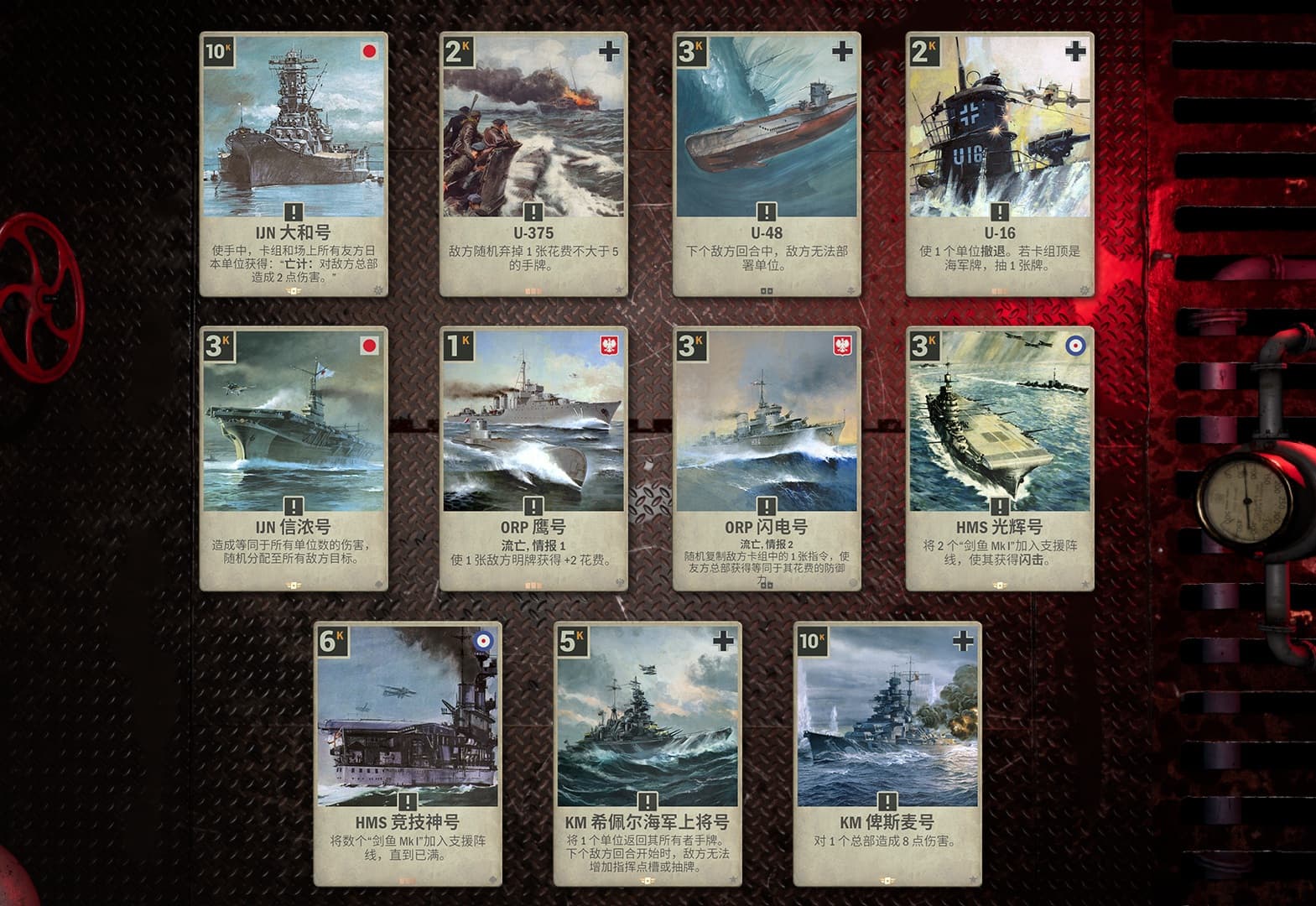 尽管海军子类别是最新推出的概念,但海战主题一直都陪伴着 KARDS。多张先前版本卡牌现将获得海军子类别。以下是整编为海军牌的卡牌列表。